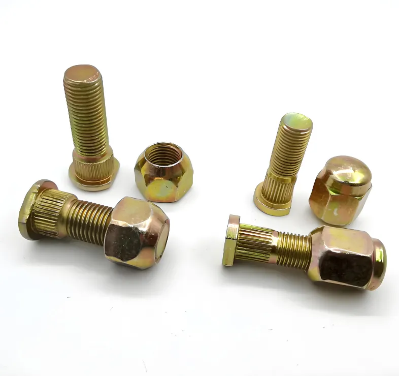 The strength level of the Tire bolt is usually 8.8, 10.9, 12.9 and so on, and the larger the value, the higher the strength. The bolt strength matching different models and load capacity is also different, 10.9 bolts are the most common, 8.8 bolts are mostly used for low-end models, and 12.9 bolts are mostly used for heavy trucks